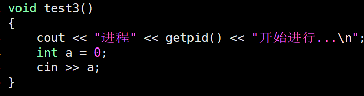 S表示的是Linux的一种阻塞态(S在Linux中被称为可中断睡眠状态),这里的可中断指的是该状态可以直接被杀掉,出现的时机就诸如scanf函数等待键盘就绪时,示例为: