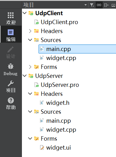 1、首先创建一个新项目,然后在.pro文件中引入network模块。并编辑ui文件添加一个QListWidget,用来显示通信的信息。
