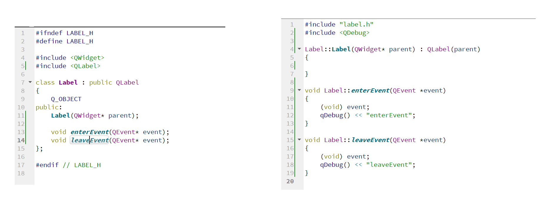 接着我们补充一下.h和.cpp的文件,修改一下构造函数,并重写enterEvent和leaveEvent。