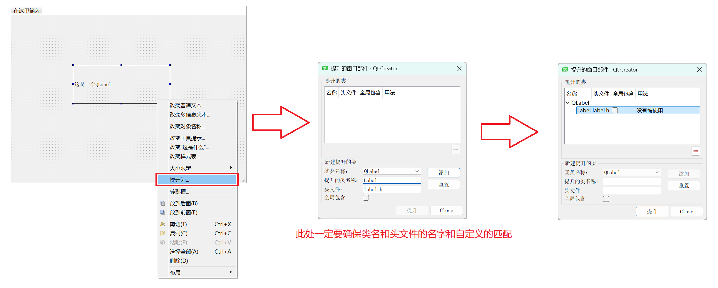 接着还有一个问题,就是我们前面创建的QLabel是通过图形化界面的方式创建出来的,但是应该用的是我们自定义的Label才行,因为我们需要继承然后重写上面两个函数。这里有个方法可以将界面上的QLabel变成Label类。