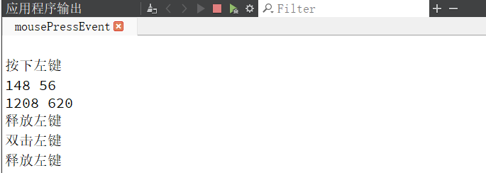 运行结果显示在eventFilter输出了调试信息,说明eventFilter已经拦截了鼠标点击事件,后续不会再进入event了。