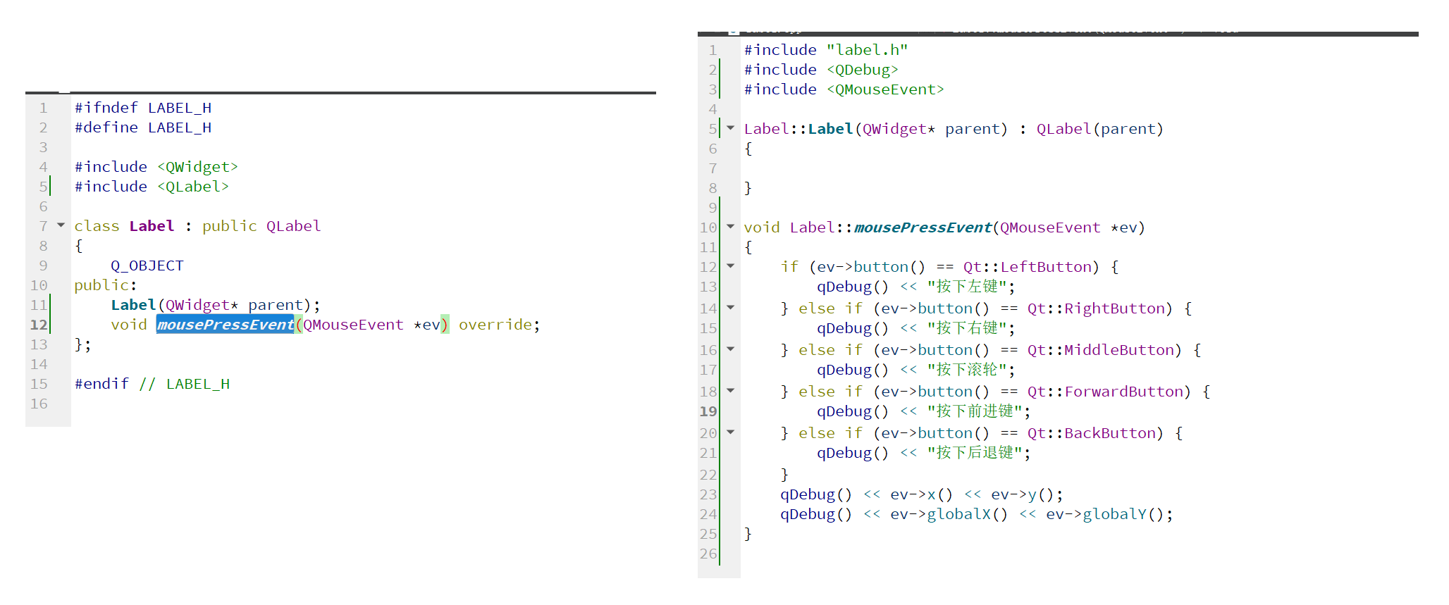 还是和之前一样的流程创建一个QLabel,然后自定义Label重写mousePressEvent函数。