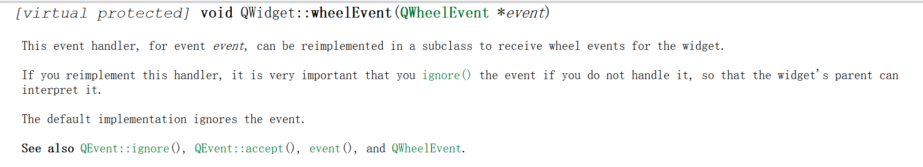 鼠标滚轮事件是通过虚函数:wheelEvent()来实现的。mouseMoveEvent()函数原型如下: