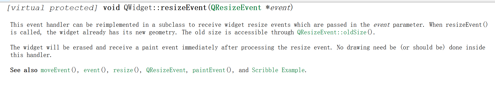 主要有两个事件:moveEvent窗口移动事件和resizeEvent窗口大小改变事件。函数原型如下: