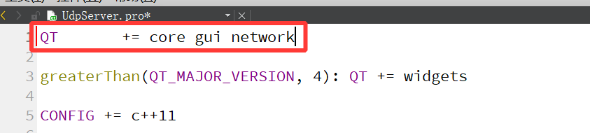 网络变成是操作系统提供的一套API(socket API),很遗憾C++标准库并没有提供网络库,之前写的是Linux平台下的系统接口。那么使用Qt的网络库需要现在.pro文件中加入network模块,我们之前学习的各种控件都是包含在QtCore模块中的。