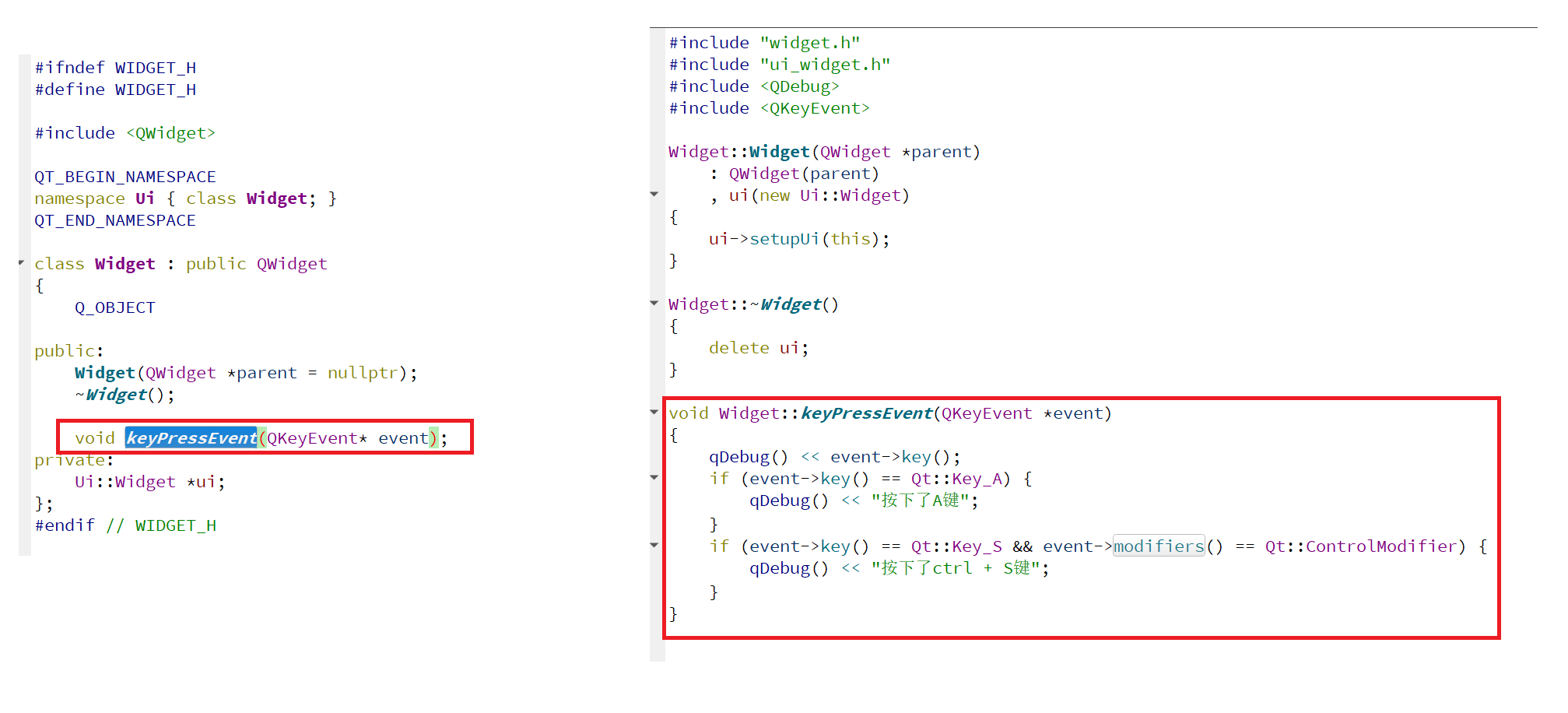 下面创建一个新项目继承自QWidget,然后在Widget类中重写keyPressEvent函数。