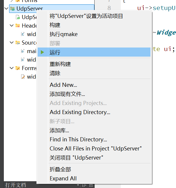 3.2、如果我们想直接运行UdpServer这个项目,也可以右击项目,直接点击运行。如下: