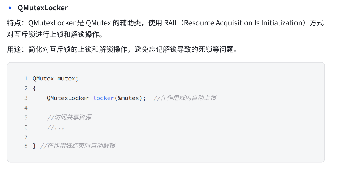 QReadLocker locker(&rwLock); //在作⽤域内⾃动上读锁