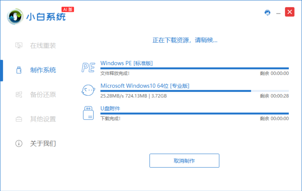 制作启动盘:打开小白一键重装系统工具,插入U盘后选择"U盘启动"模式,一键制作启动盘。
