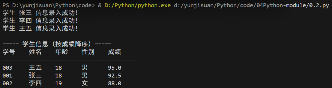 print("\n===== 学生信息(按成绩降序)=====")
