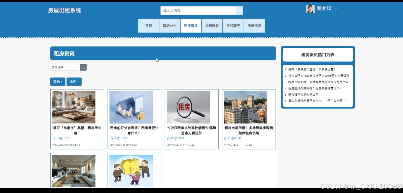 关键词:房屋出租系统;SpringBoot;系统设计;用户管理;租赁合同