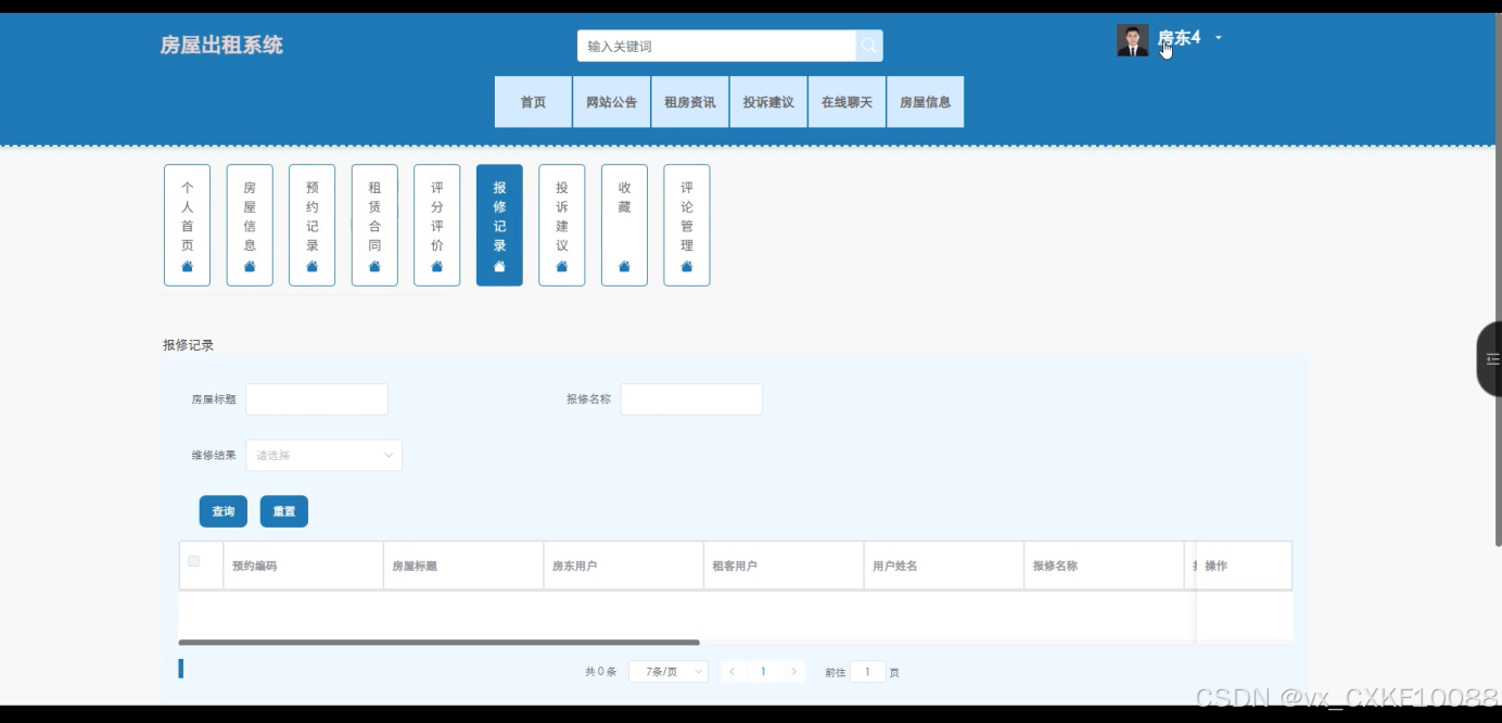 房东可以查看并管理租客提交的房屋报修请求。通过报修记录,房东可以及时了解房源的维修需求,并安排相应的处理。该功能有助于提高房东对房屋维护的响应速度,确保租客的居住体验。界面如下图所示。
