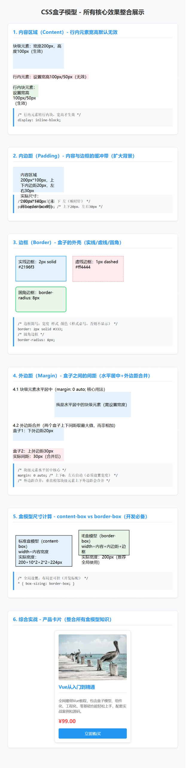 效果:一个结构清晰、样式美观的产品卡片,完美运用了盒子模型的所有知识点(width, height, padding, border, margin, box-sizing)。