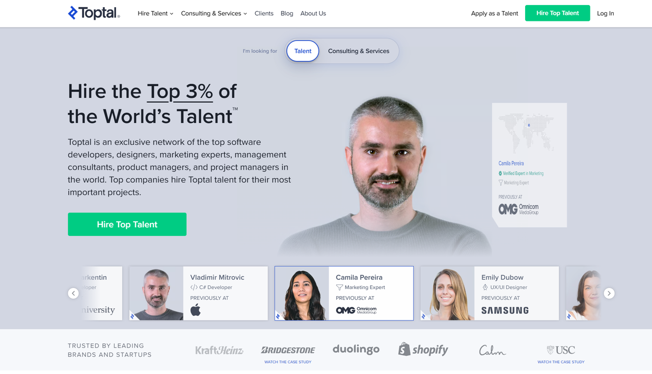 Toptal 是面向高端自由职业者的远程工作平台,主要对接企业级客户和经过严格筛选的开发者、设计师和金融专家。在开发领域,Toptal 强调对候选人的技术能力、沟通能力和英文水平进行多轮筛选,通过率较低,成功加入后一般能接触到相对稳定、预算较高的项目。
