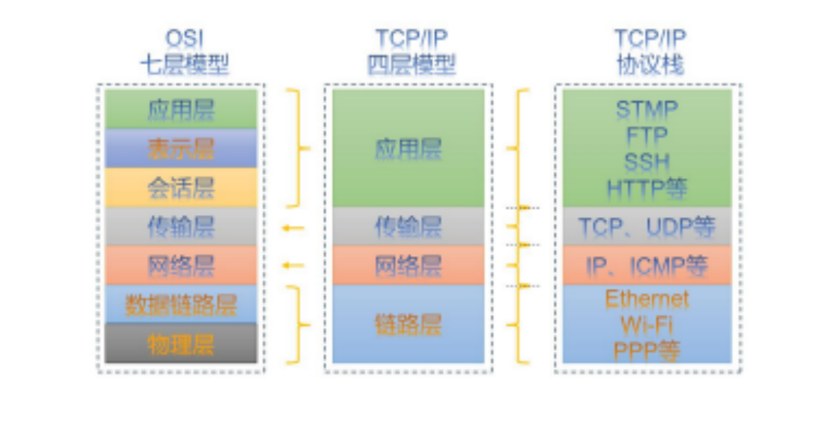 • 协议:该层包括了 SMTP、FTP、SSH、HTTP 等协议,这些协议都在应用层上实现,以实现客户端与服务器之间的通信和数据交换。不同的功能使用不同的协议。