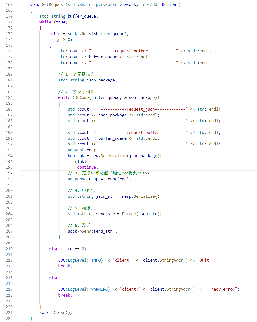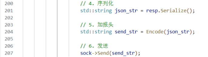 然后再对计算好的相应序列化,加报头,最后发送。这里都是封装好的,体现面向对象。
