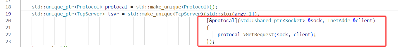 创建协议的时候,要绑定匿名函数,指定服务器要执行的逻辑。