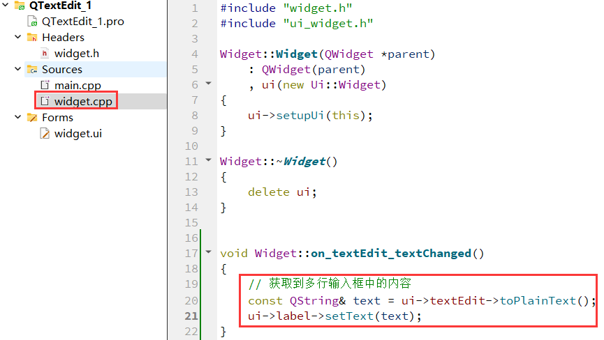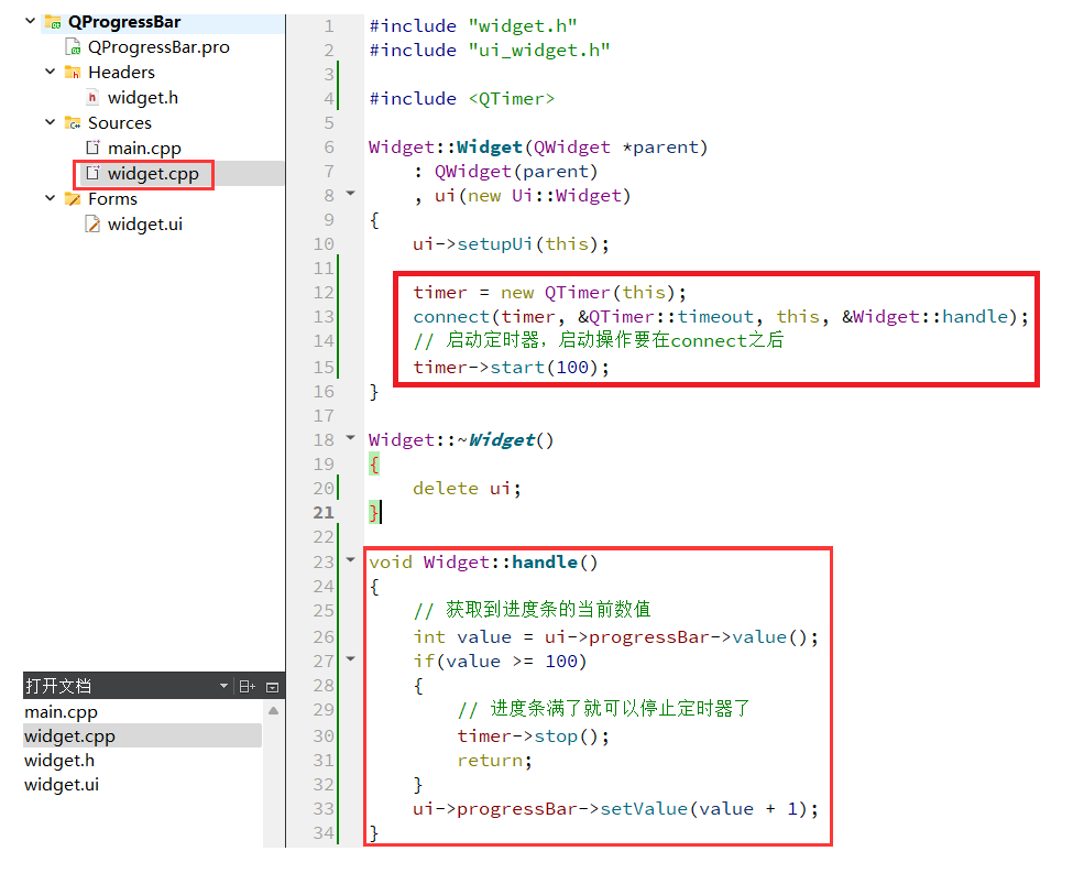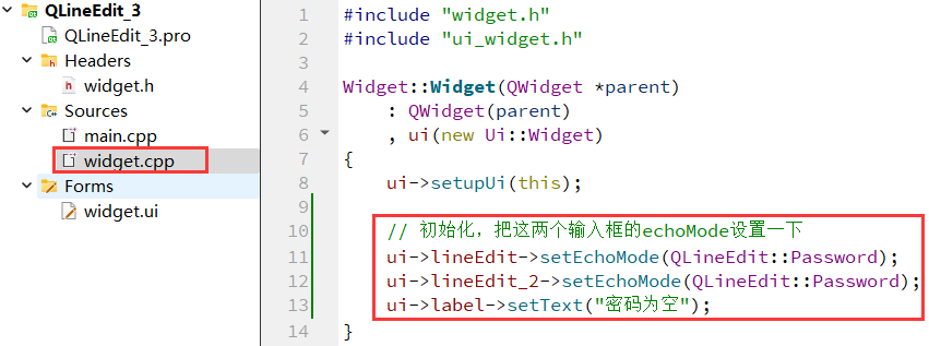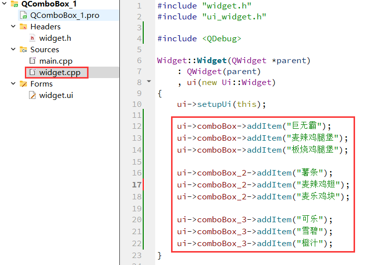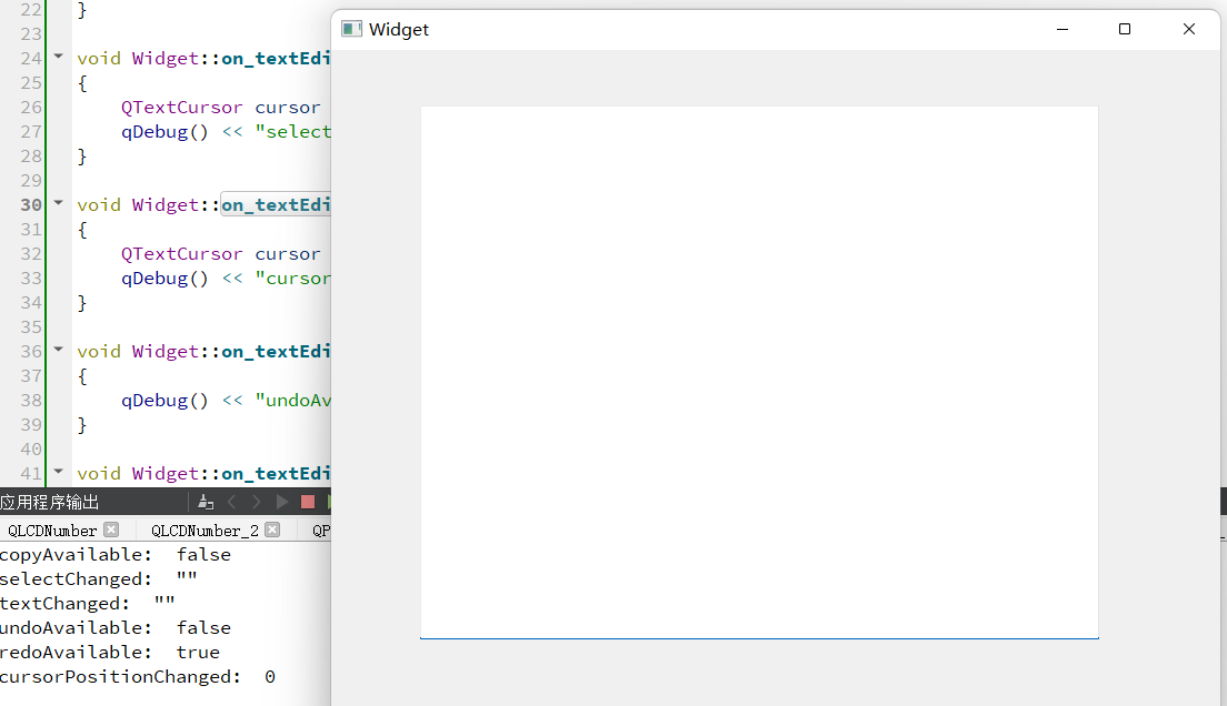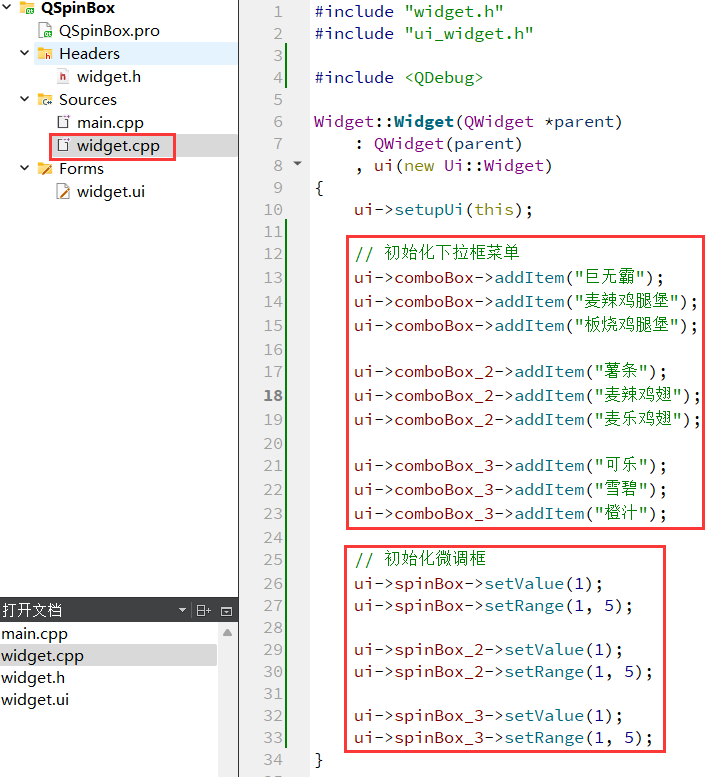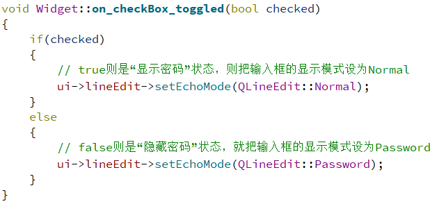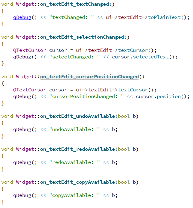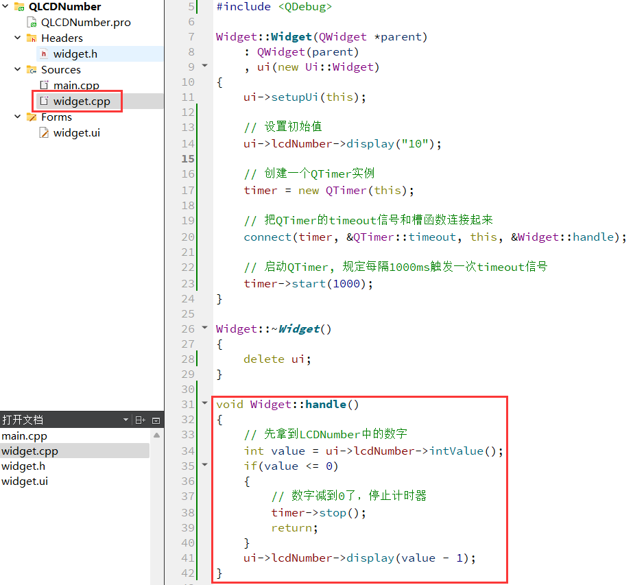 (2)修改 widget.cpp,编辑三个 QRadioButton 的 slot 函数