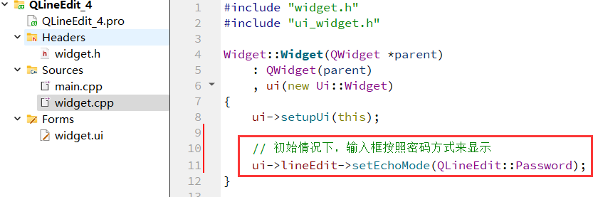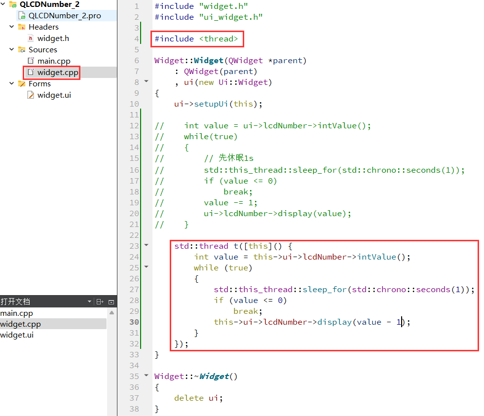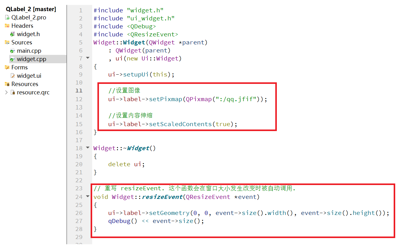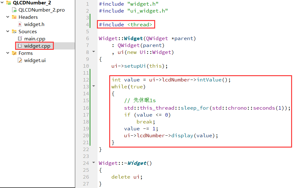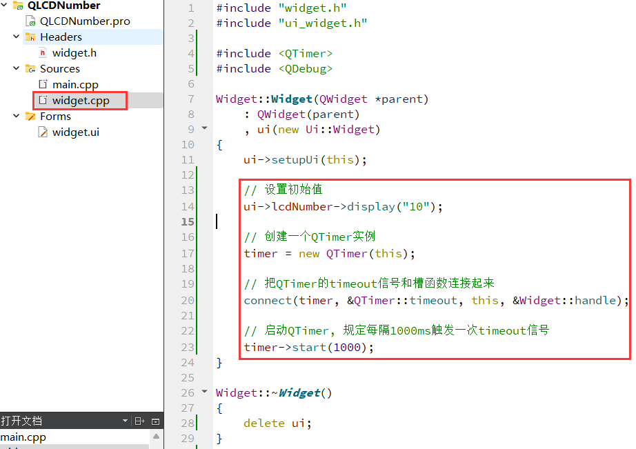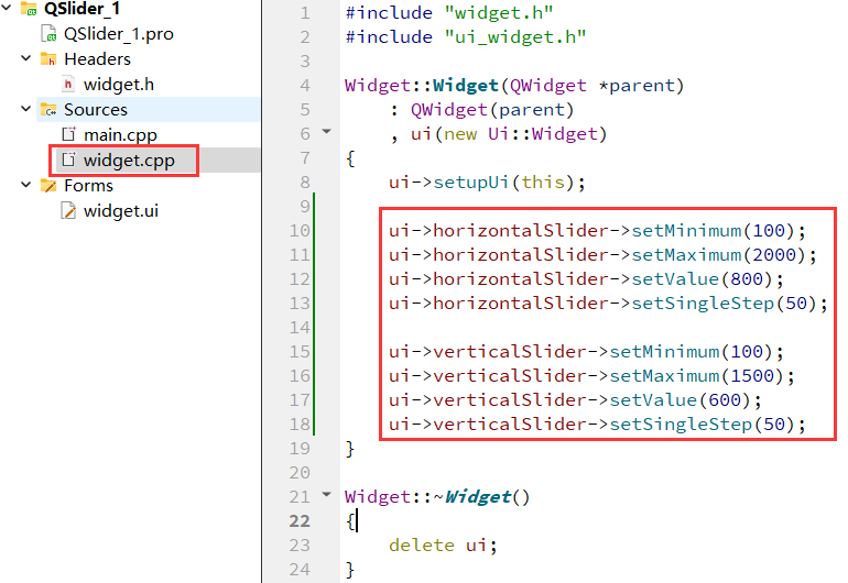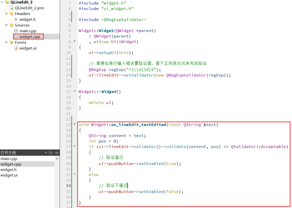 (2)修改 widget.cpp,编辑三个 QRadioButton 的 slot 函数