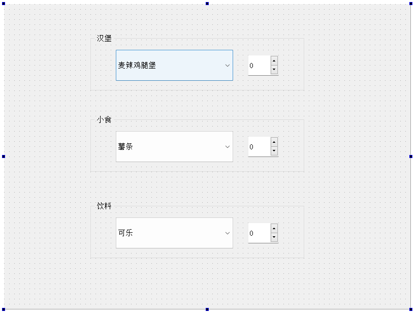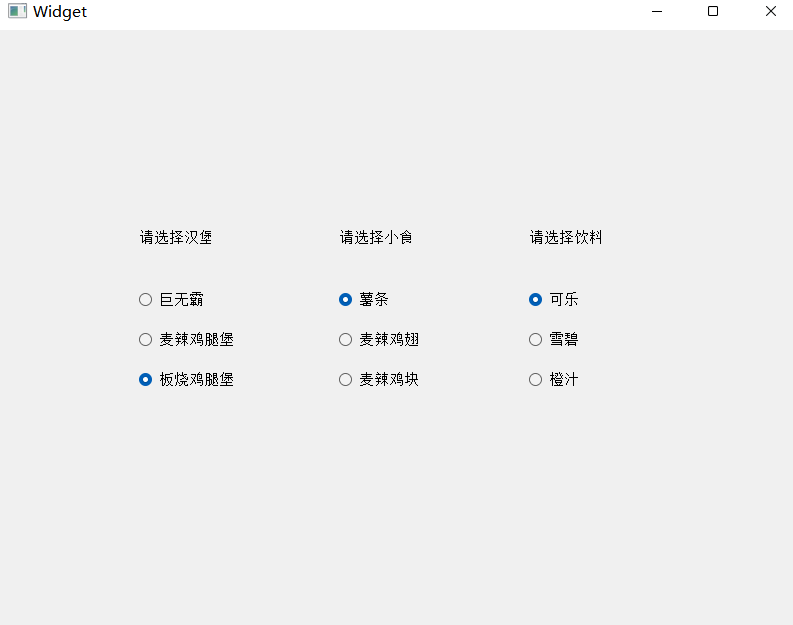 (1)在界面上创建 9 个单选框,用来模拟麦当劳点餐界面。