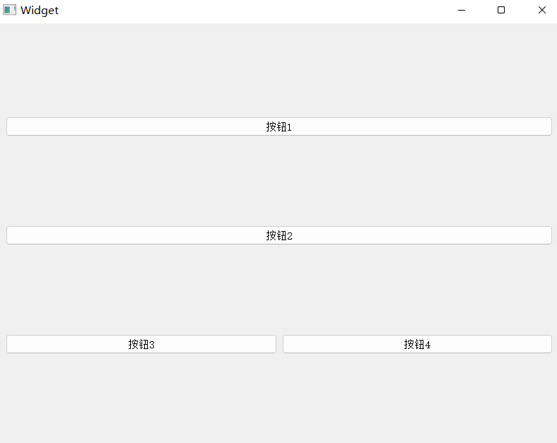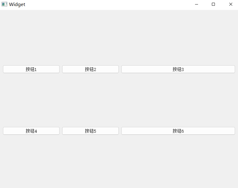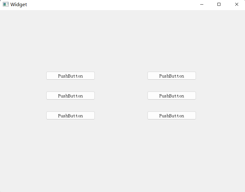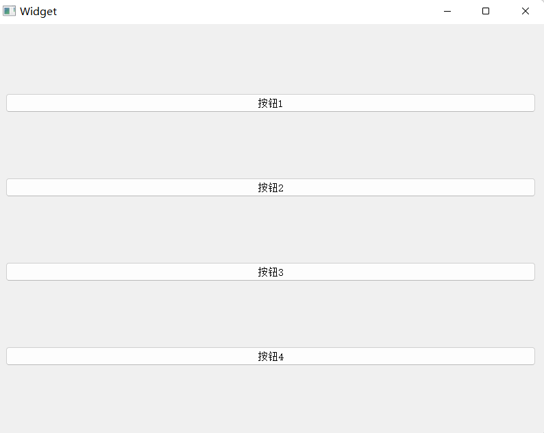 执行代码可以看到这几个按钮都在同一列了,相当于 QVBoxLayout: