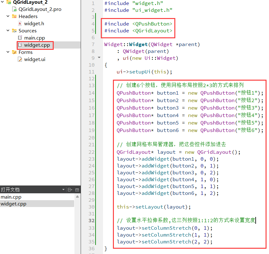 - [代码示例:设置 QGridLayout 中元素的大小比例](#代码示例:设置 QGridLayout 中元素的大小比例)