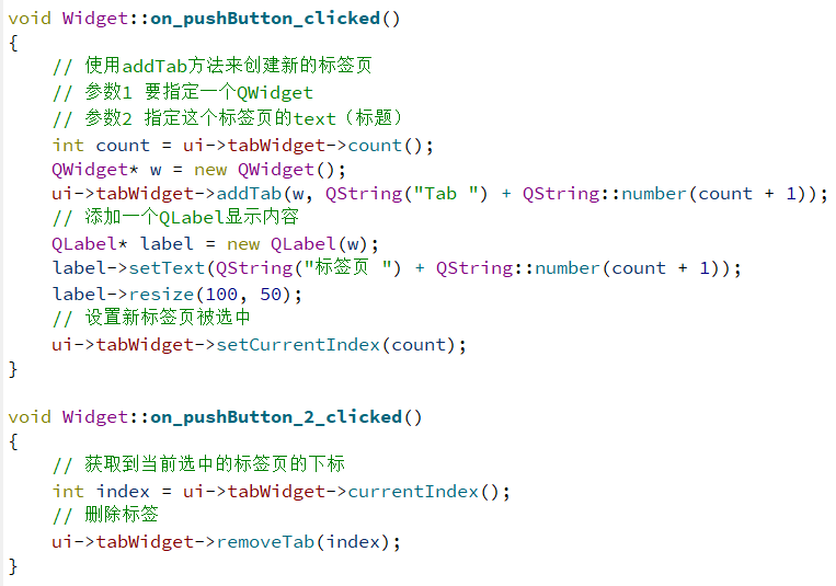 - QTabWidget 中的每个标签页都是⼀个 QWidget