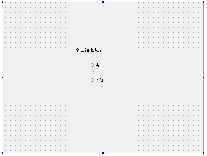 设置的文本如下图,3 个单选按钮的 objectName 分别为:radioButton_male、radioButton_female、radioButton_other