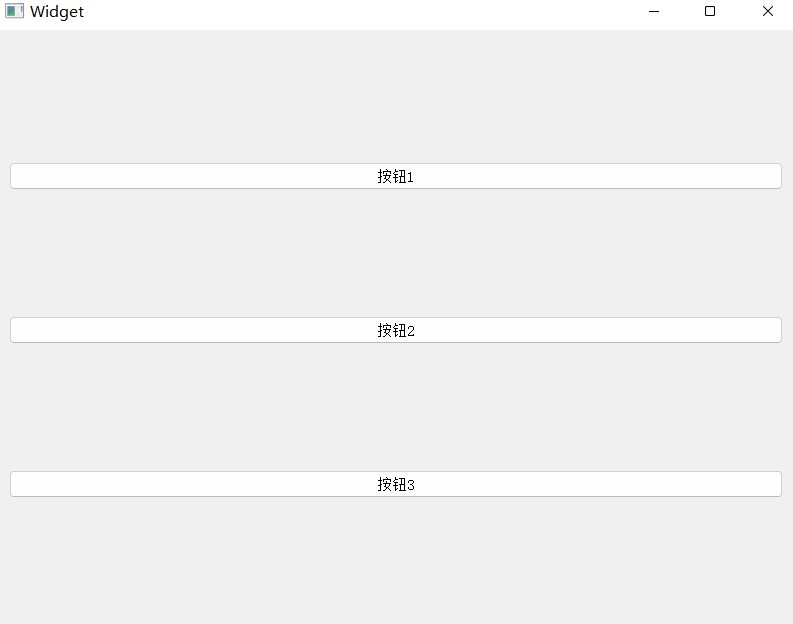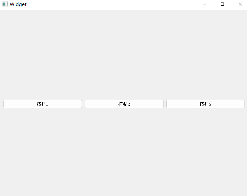 可以看到此时界面上的按钮就存在于布局管理器中,随着窗口尺寸变化而发生改变。此时的三个按钮的尺存和位置都是自动计算出来的。