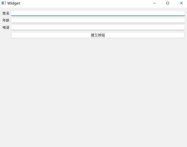 (1)编写代码,创建 QFormLayout,以及三个 label 和三个 lineEdit