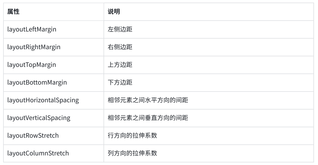 核心属性 (和 QVBoxLayout 属性是一致的)