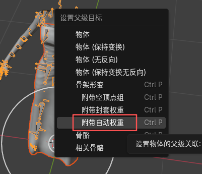 选衣服 Shift选骨架 Ctrl + P → With Automatic Weights