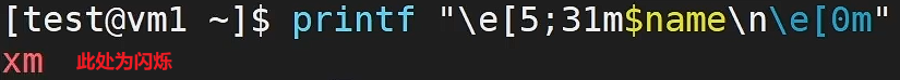- printf "\e[5;31m$name\n\e[0m"
