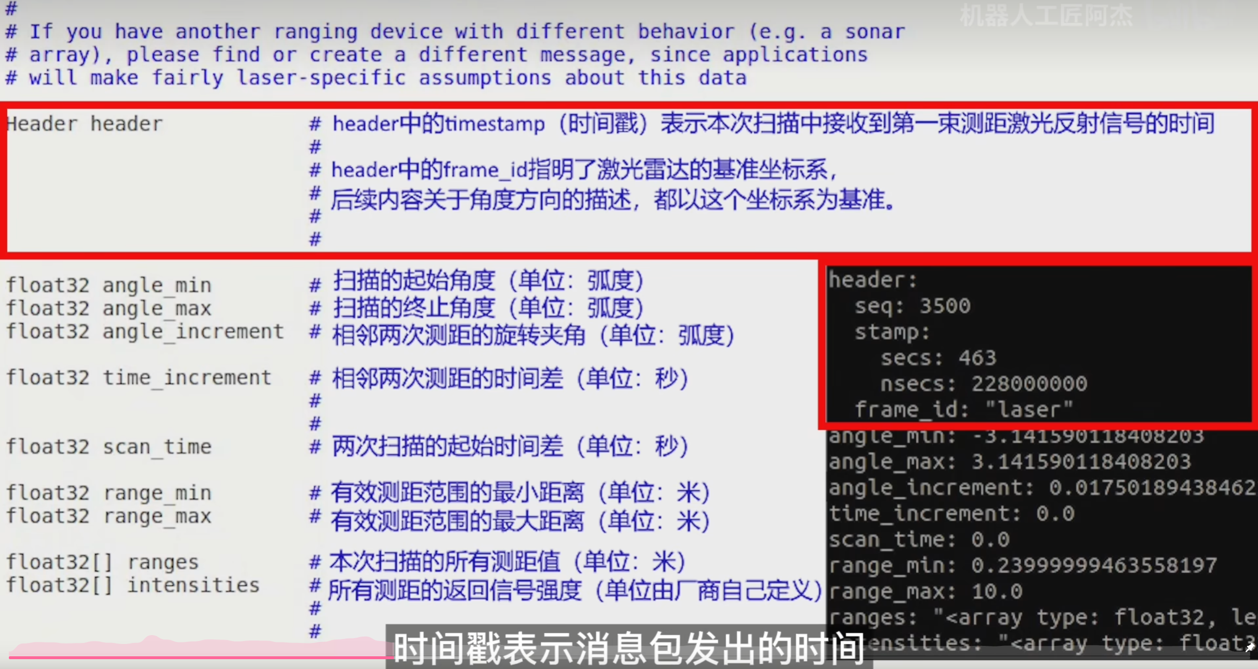 消息类型:LaserScan