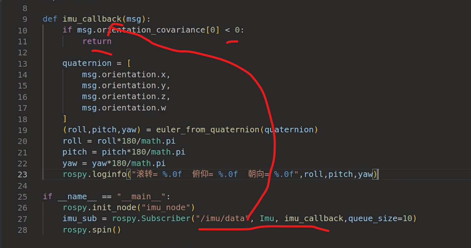 这里的 msg 是来自 /imu/data 话题的 Imu 类型消息