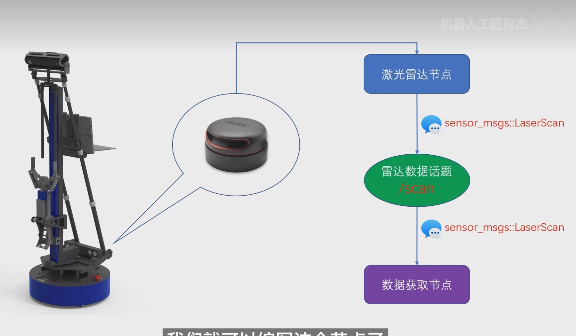订阅主题:/scan(激光雷达标准数据主题)