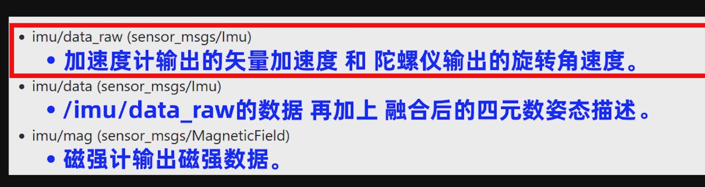 包含了 IMU 传感器的所有测量数据