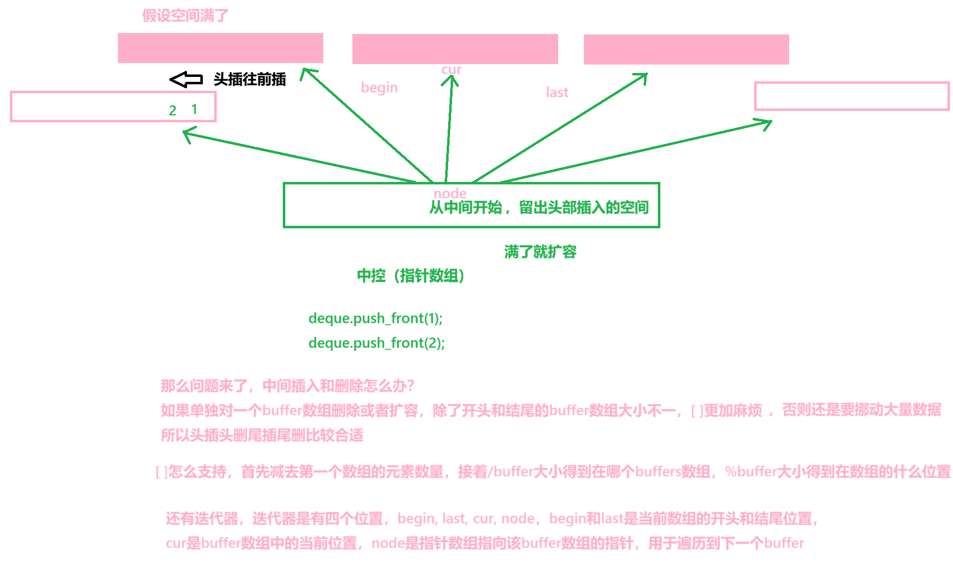 双端队列和vector相比,[ ]不够极致,极大缓解头插头删以及扩容效率问题,和list相比CPU高速缓存效率不错,支持随机访问