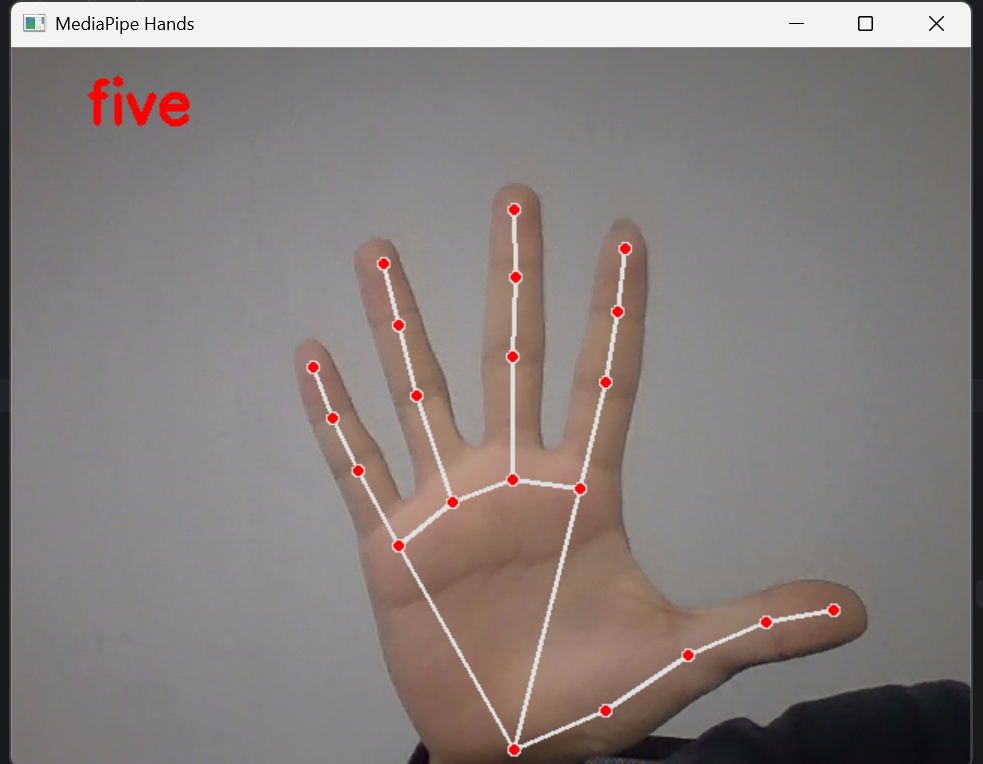 cv2.putText(frame, gesture[flag], (50, 50), 0, 1.3, (0, 0, 255), 3)