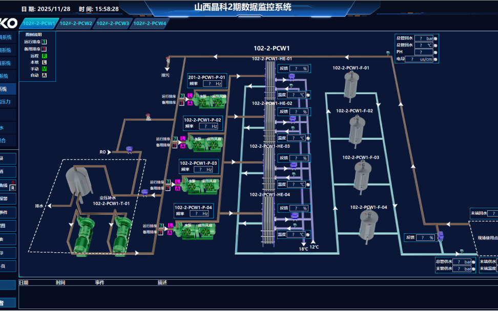 PCW 工艺冷却水系统监控:采集水温、流量等参数并调控工况,防止设备过热停机,保障发电设备连续运行