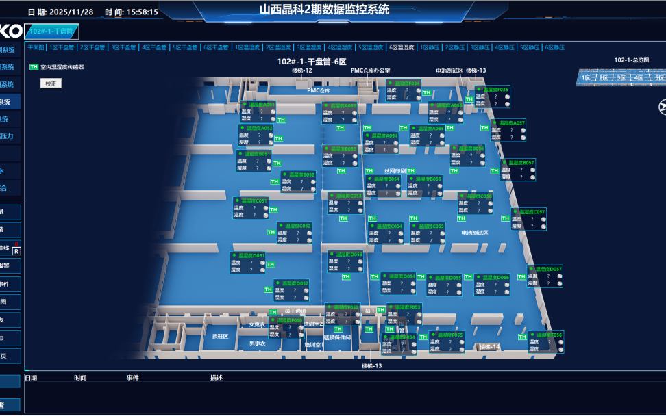 干盘管系统监控:监控分区环境温湿度,调节换热效率,适配恒温环境需求