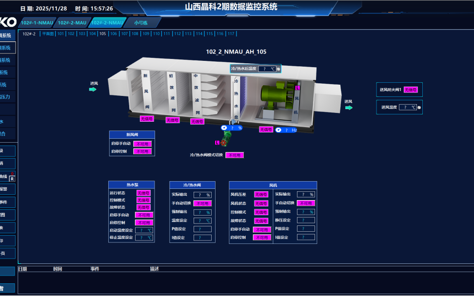 MAU 新风系统监控:监控生产区域及单台 MAU 设备,防范粉尘侵入与温湿度超标,保障光伏生产设备(如切片机、电池测试设备)安全与工艺稳定
