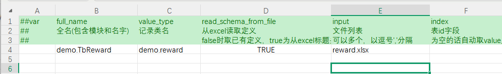 在MiniTemplate/Datas目录下创建reward.xlsx文件,内容如下: