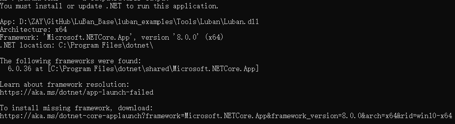 如果出现下面这种情况,则是dotnet sdk 8.0或更高版本sdk没有安装,那就需要去下载安装下。
