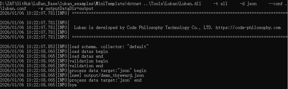 在MiniTemplate/output目录下生成了json配置数据,可自行打开查看。