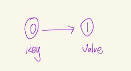 在实现拓扑排序之前,我们需要先知道拓扑图的信息。已知题目传递的参数为数组,如何将图和数组建立关联呢?这里的关联是,我们需要知道每个顶点四周边的走向,这里我们可以通过HashMap来实现,具体情况为HashMap<Integer,List<Integer>>,其中key表示先需要执行活动顶点对应的 val 值,value 表示 key 顶点指出方向的顶点对应 val 值。拿示例 1 来看,学习 1 课程前必须要学会 0 课程,箭头的指示方向就应该从 0 指向 1 ,key = 0,value 包含 1, 如下图所示: