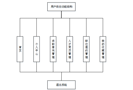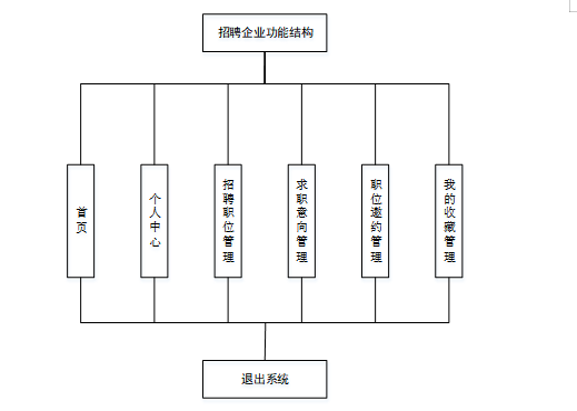 - 招聘企业功能模块包括:首页、个人中心、招聘职位管理、求职意向管理、职位邀约管理、我的收藏管理模块。