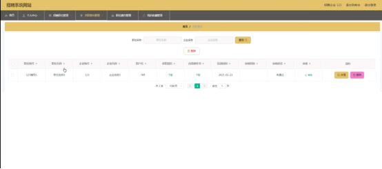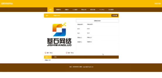 本系统设计的是一个招聘网的网站,此网站使用户实现了不需出门就可以在电脑前进行网上查看首页、招聘职位、招聘会、人才简历、网站公告、留言反馈、个人中心、后台管理等。不需亲临现场就可以在网站的图片上找到合适的工作。