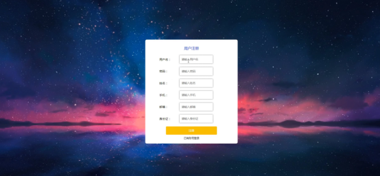 用户注册,在用户注册页面可以填写用户名、密码、姓名、手机、邮箱、身份证等详细信息进行注册,如图5-5所示。