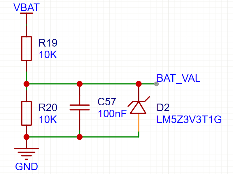 如何测量电池的电压,可以用ADC,但是ADC的范围只有3V3,因此我们考虑测量分压,乘以倍率得到。
